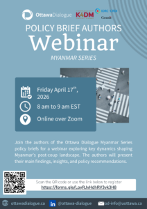 Join the authors of the Ottawa Dialogue Myanmar Series policy briefs for a webinar exploring key dynamics shaping Myanmar’s post-coup landscape. The authors will present their main findings, insights, and policy recommendations.