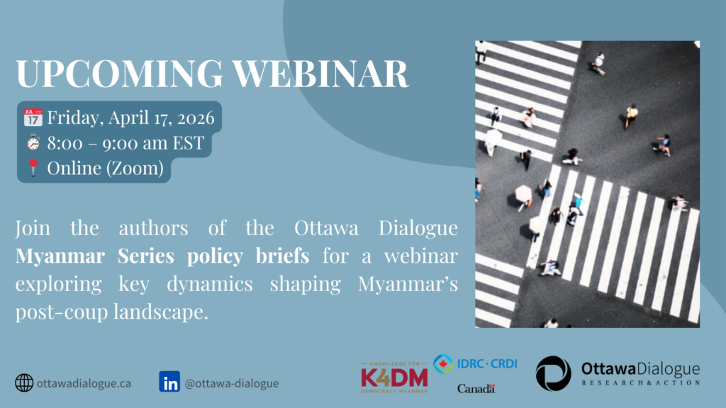 Join the authors of the Ottawa Dialogue Myanmar Series policy briefs for a webinar exploring key dynamics shaping Myanmar’s post-coup landscape. The authors will present their main findings, insights, and policy recommendations.